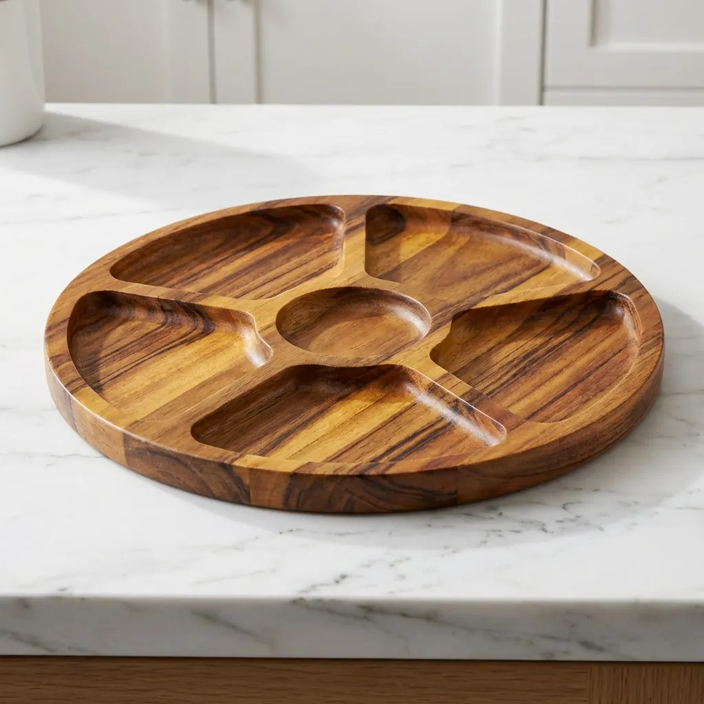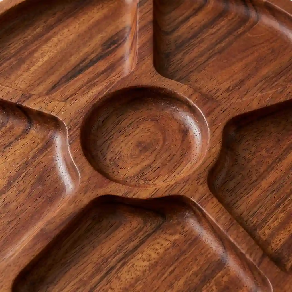 ج.مهذا طبق التقديم الخشبي المُقسم ليس مجرد أداة للضيافة، بل قطعة فنية صُنعت بعناية لتُجسّد روح الحِرفة وجمال الطبيعة المستدام.
