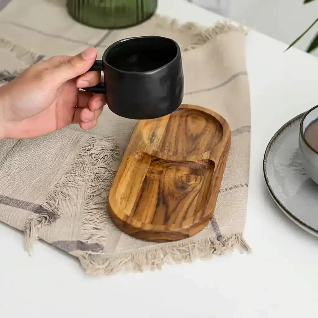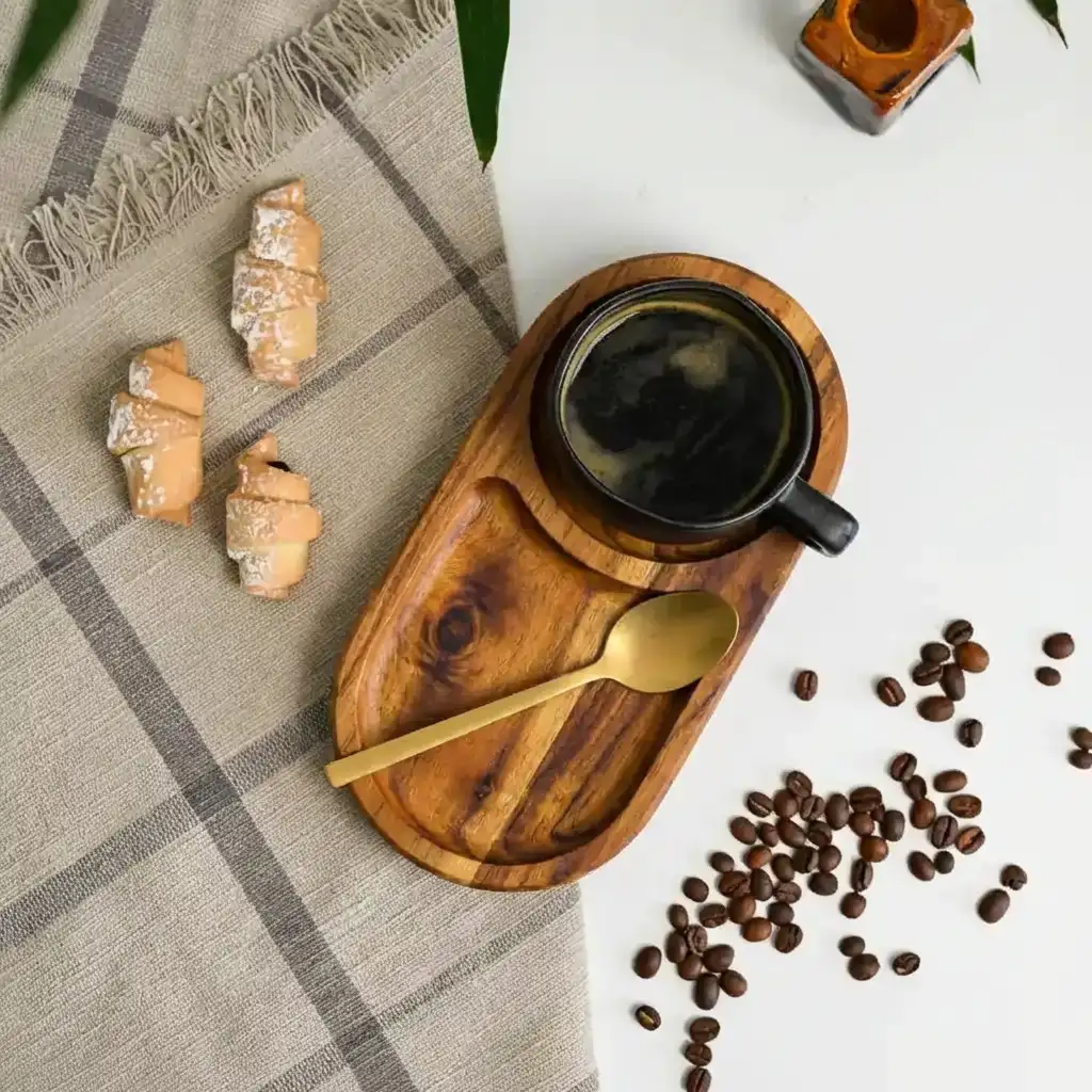 ارتقِ بتجربة الضيافة مع صينية التقديم المصنوعة من خشب السرسوع الفاخر—خشب نادر يتميز بصلابة عالية، شكل جذاب، ومقاومة ممتازة للاستخدام اليومي.