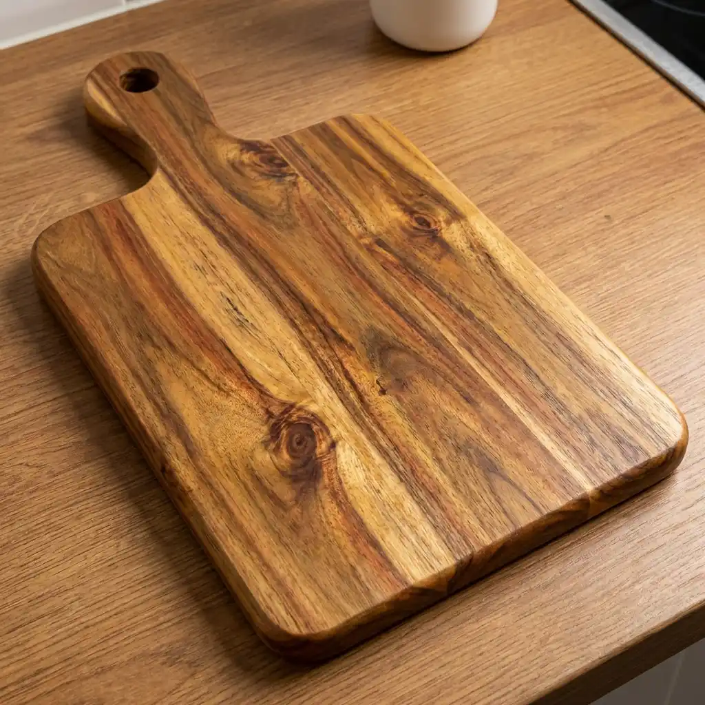 تُستخدم كـ بلانشة تقديم أنيقة للجبن والمخبوزات، أو قطاعة خشب خفيفة، وكمان قطعة ديكور جميلة تضيف طابع طبيعي للمطبخ.