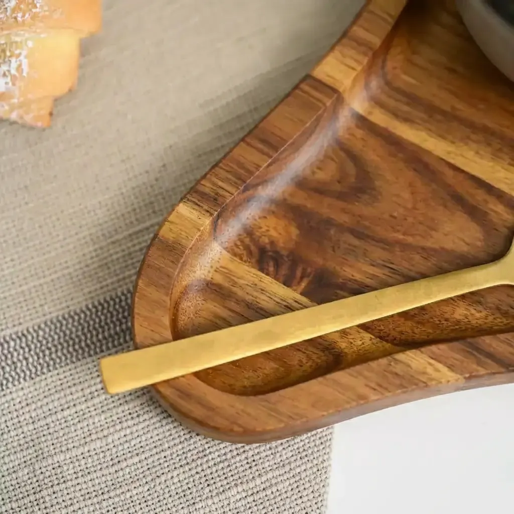 يتم تصنيع كل قطعة يدويًا بعناية فائقة مع إبراز جمال العروق الطبيعية للخشب، وتشطيب Food-Safe يمنح ملمس ناعم ومظهر عصري.