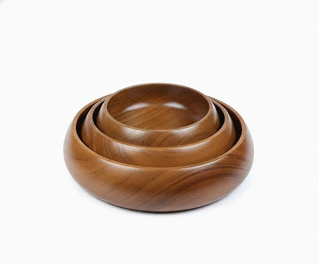 تتميز البولات بشكلها الانسيابي المستدير (Bowl Bombé Design) الذي يعطيها مظهر فاخر، ومع عروق الخشب الطبيعية يبقى عندك قطعة فنية مش مجرد طبق.