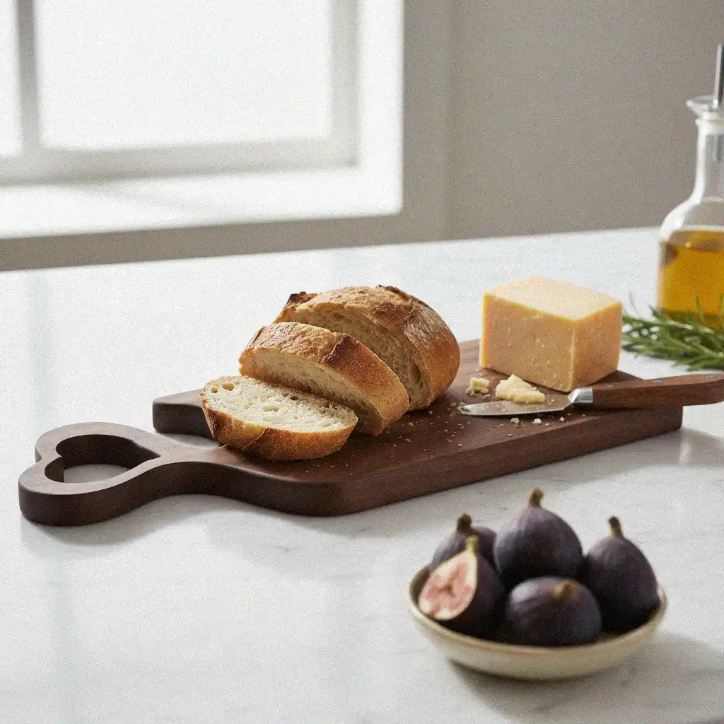السطح متصنفر بعناية عشان يبقى ناعم وآمن على السكاكين، ومتغطى بزيت طبيعي آمن تمامًا مع الأكل، يحافظ على لمعة الخشب ولونه المميز لفترة طويلة.