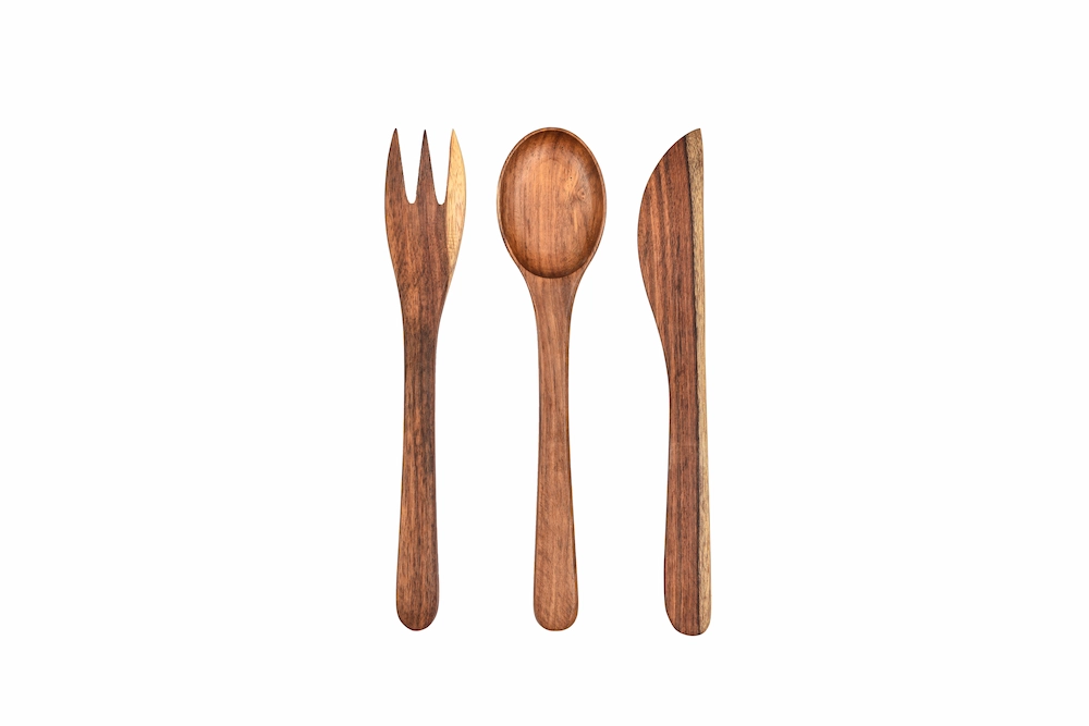 طقم أدوات مائدة من خشب السرسوع (سكينة - شوكة - ملعقة) | Woody Egypt